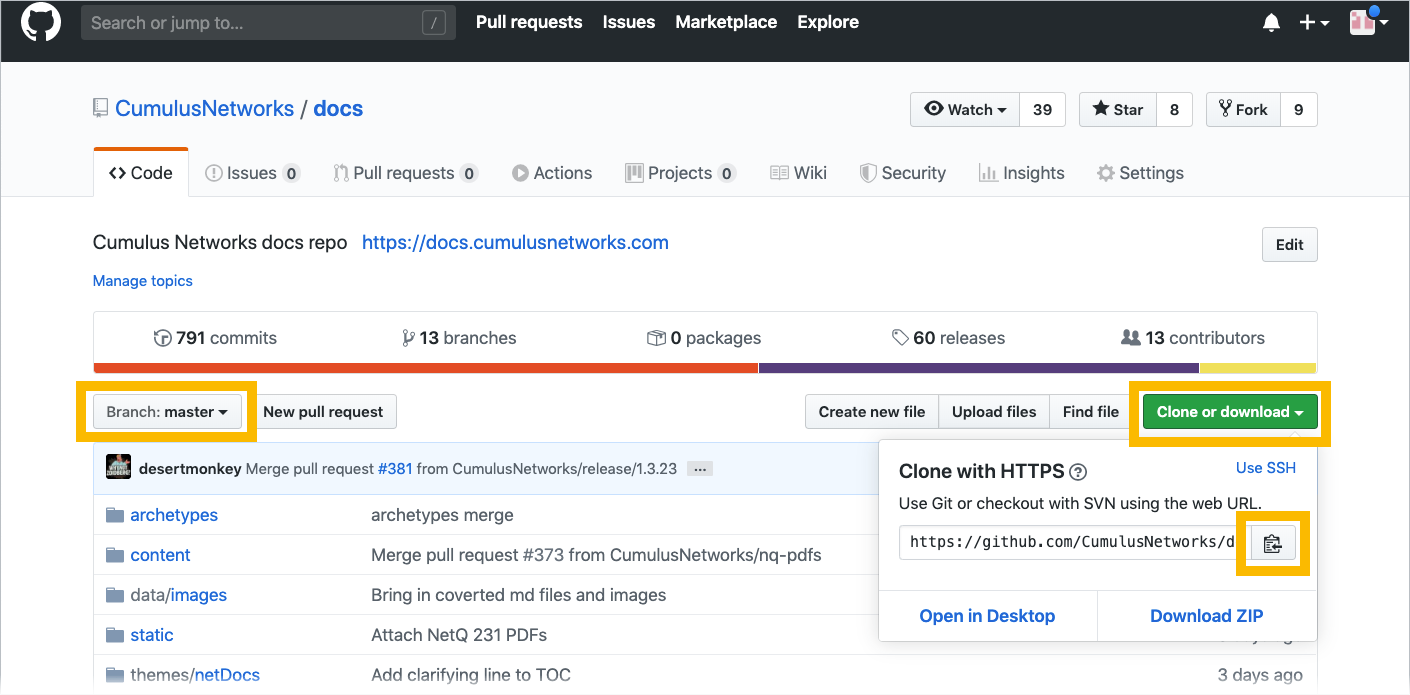 <computer>:<cndocs-repo> <username>$ git clone https://github.com/CumulusNetworks/docs.git
