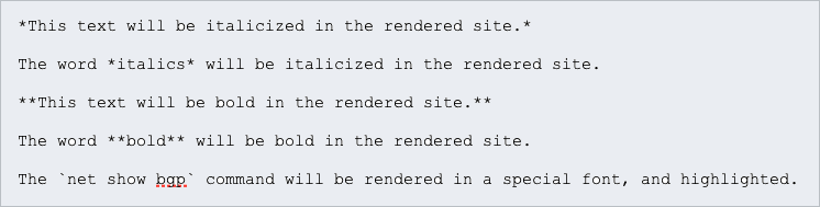 • Use two asterisks (**) on either side of a word or phrase to bold the text.