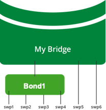 To create a bond, specify the bond members. In the example below, the front panel port interfaces swp1 thru swp4 are members of bond1 but swp5 and swp6 are not part of bond1.