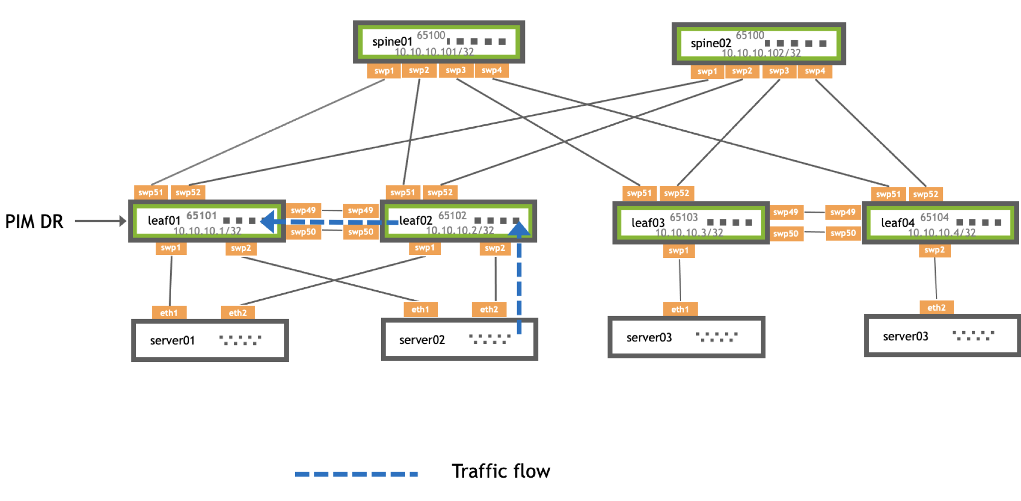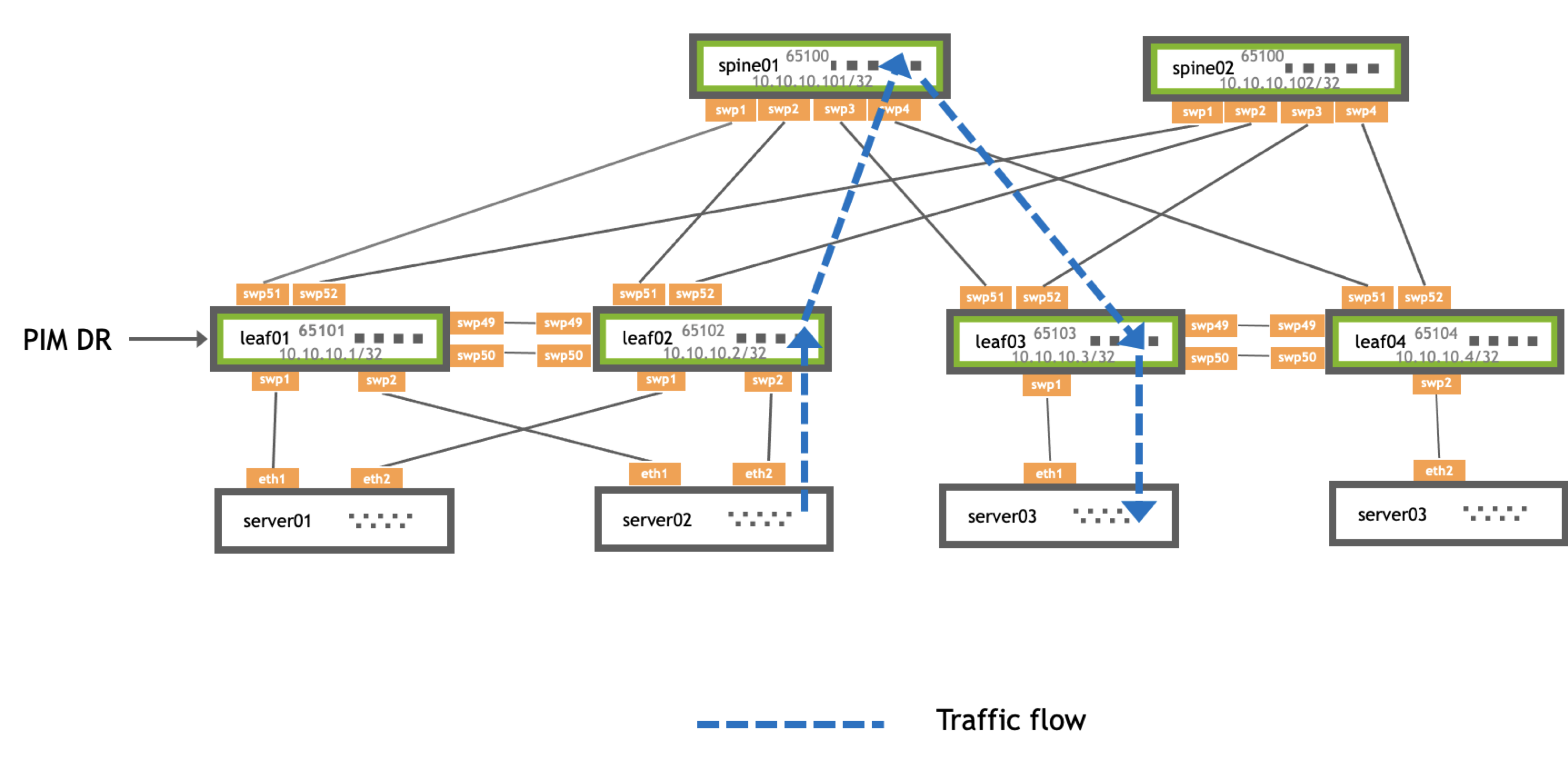 - NVIDIA recommends that you do not use a spine switch as an RP when using eBGP in a Clos network. See the PIM Overview knowledge-base article.