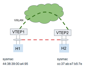• Only two VTEPs are in the VXLAN. VTEP1 and VTEP2 point to each other as the only remote VTEP.