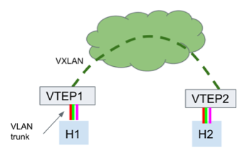 • The VTEP host-facing port is in access mode and the PVID maps to the VNI.
