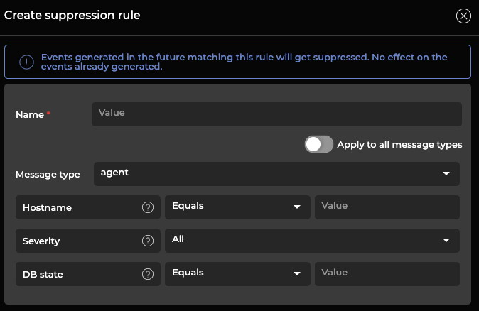 3. Select Add rule. You can configure individual suppression rules or you can create a group rule that suppresses events for all message types.