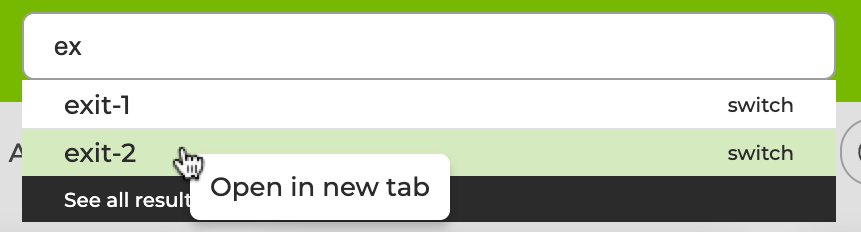 You can search for devices or cards in the global search field in the header. Right-click the hostname of any switch in your network to open a dashboard in a new tab that displays a comprehensive overview of platform information, events, and interfaces for that switch.