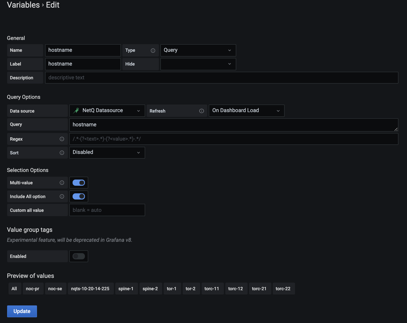 The following example is based on an OOB-management configuration, and modified to support higher scalability for NetQ.