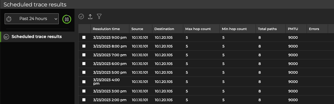 You can modify scheduled traces at any time as described below. An administrator can also manage scheduled traces through the NetQ management dashboard.