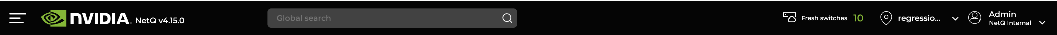 • Application Header: Contains the main menu, NetQ version, global search field, count of reachable devices, premises list, and account information.