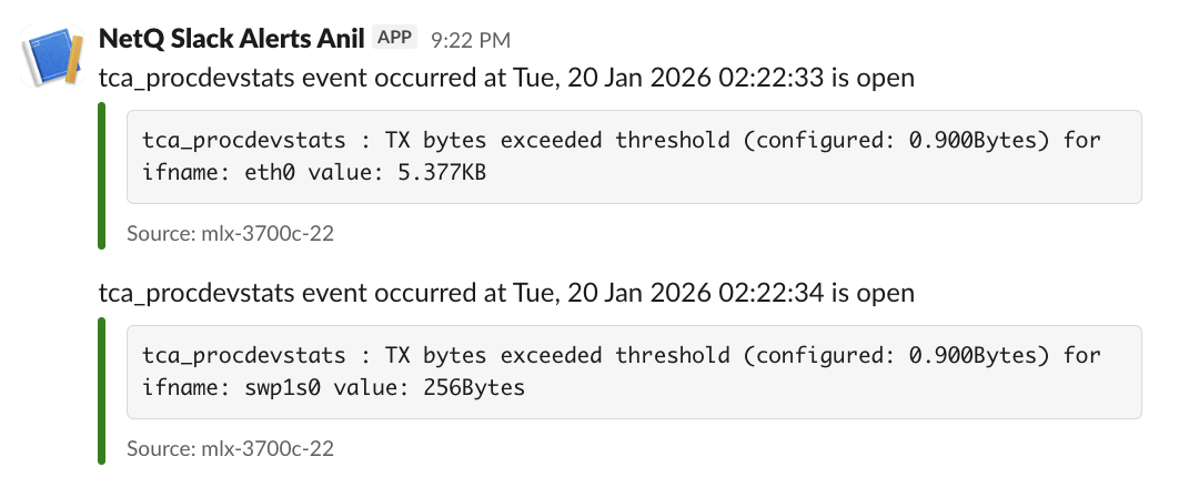 TCA_TXMULTICAST_UPPER_1 TCA_TXMULTICAST_UPPE {"ifname":"swp3","hostname info tca-tx-bytes-slack True 0 Sun Dec 8 16:40:14 2025