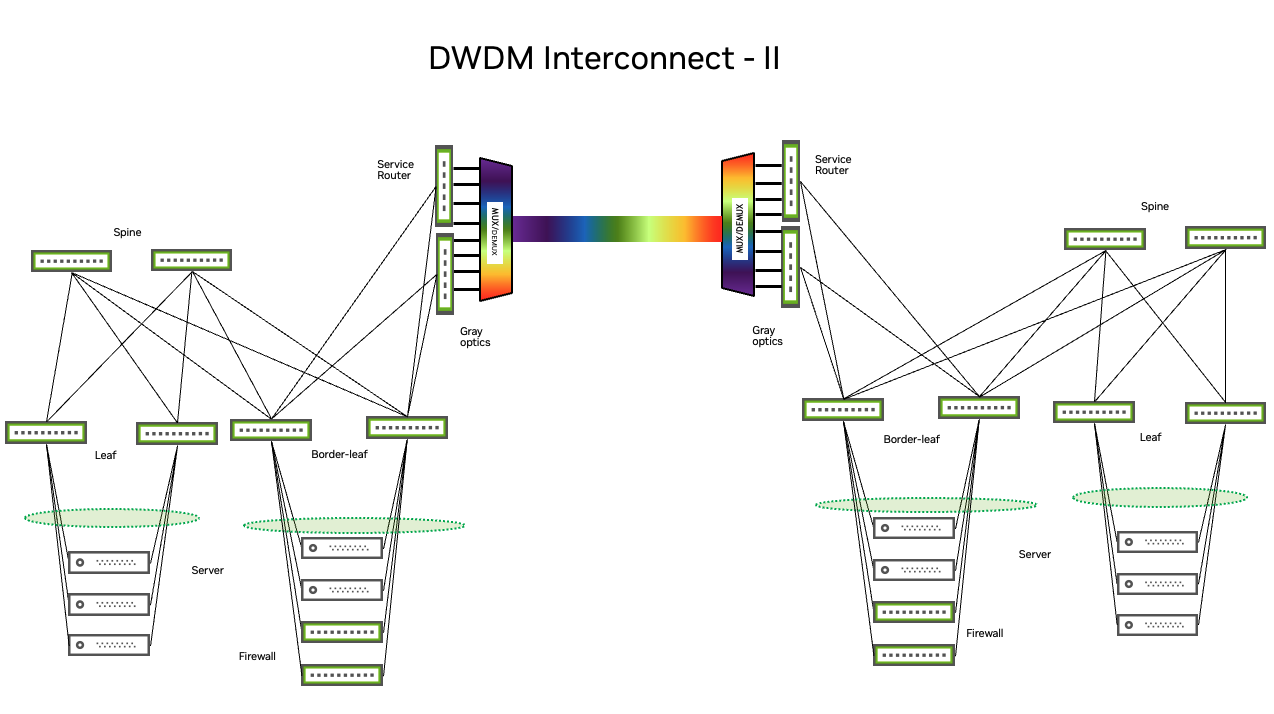 There are several ways to interconnect the physical layer of multiple data centers. The most popular deployment strategies include dark fiber interconnect and dense wavelength division multiplexing (DWDM) interconnect.