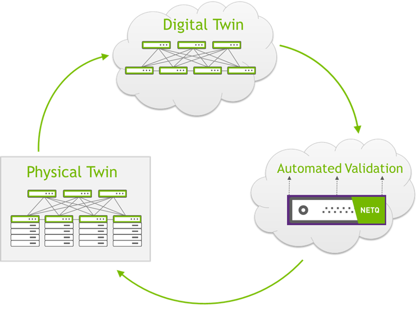 When the physical equipment gets installed, cabled, and powered on, the entire data center network can be up and running in minutes - reducing the time to production by 95%. But now this environment is software-defined and hardware-accelerated in a way that is ready for the CI/CD operational model where the network infrastructure is treated as code because that Digital Twin doesn’t go away after the production network is running.