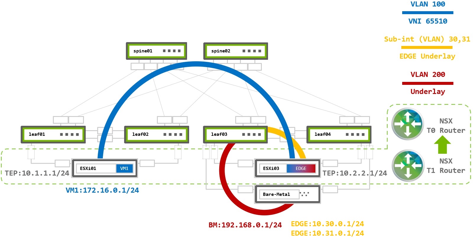 We focus only on the VM-to-VM and VM-to-BM user traffic. Thus, other networks such as management, vMotion, and others are not covered in the configuration.